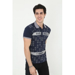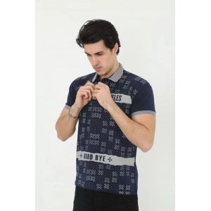 Erkek Yakalı Slim Fit Baskılı T-Shirt - Lacivert