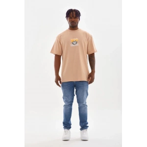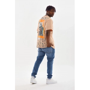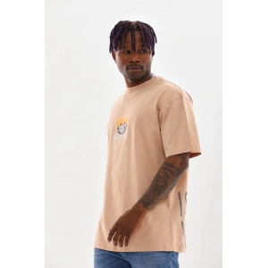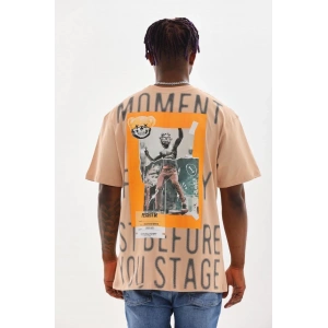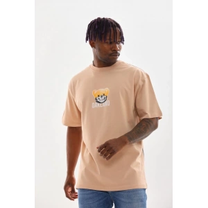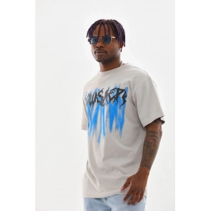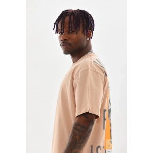 Unisex Baskılı Oversize T-Shirt - Bej