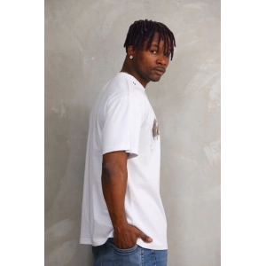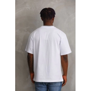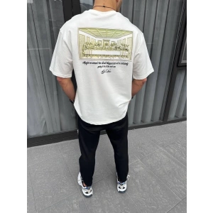 Unisex Kuşgözü Detaylı Baskılı Oversize T-Shirt - Beyaz