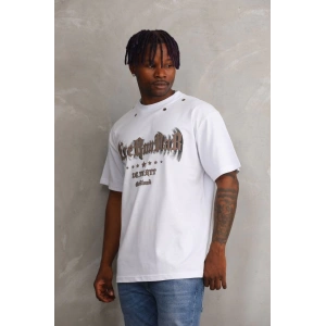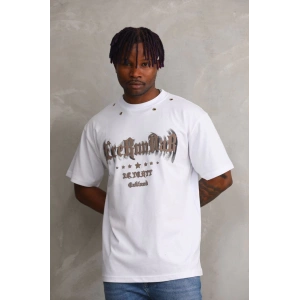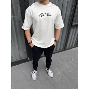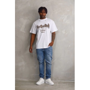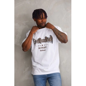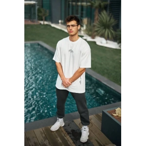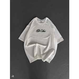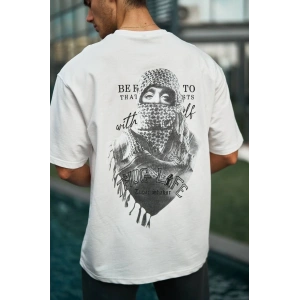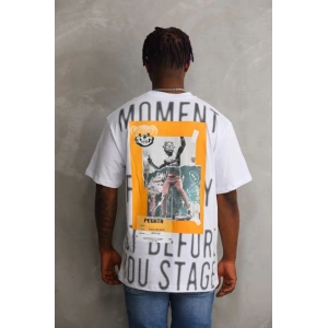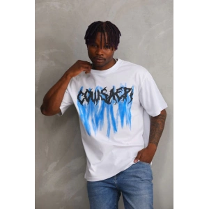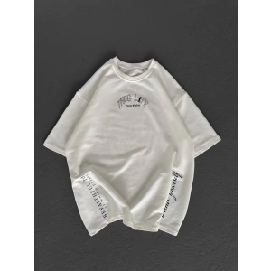 Unisex Baskılı Oversize T-Shirt - Beyaz