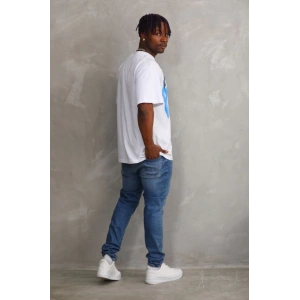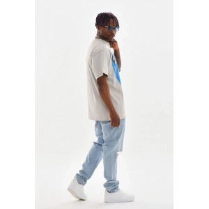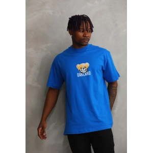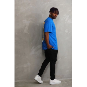 Unisex Baskılı Oversize T-Shirt - Mavi