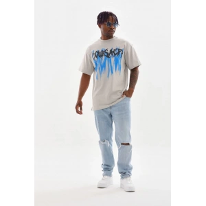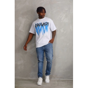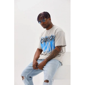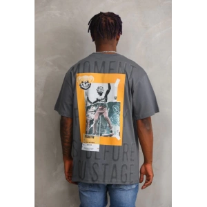 Unisex Baskılı Oversize T-Shirt - Gri