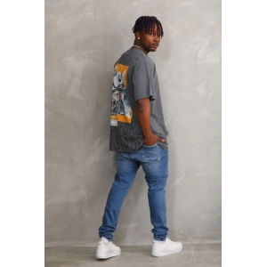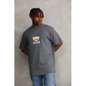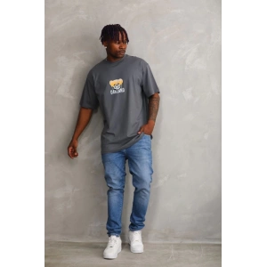 Unisex Baskılı Oversize T-Shirt - Füme