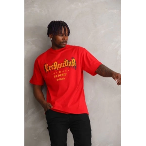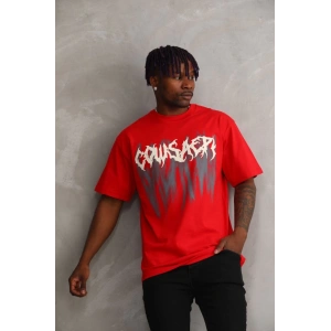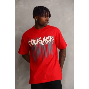 Unisex Baskılı Oversize T-Shirt - Kırmızı