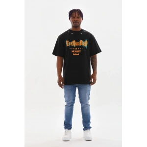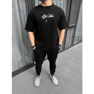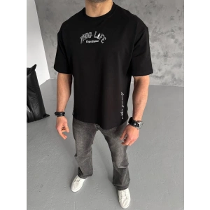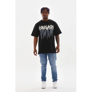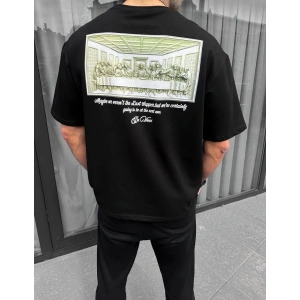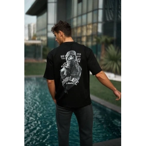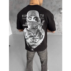 Unisex Baskılı Oversize T-Shirt - Siyah
