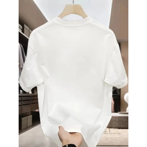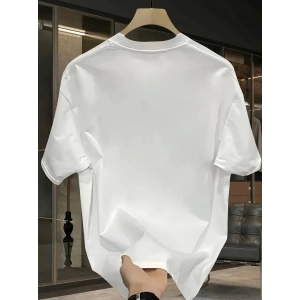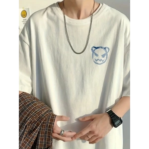 20/1 Penye Compack Bisiklet Yaka Kore tarzı sevimli ayı baskı Kısa Kol Erkek t-shirt - Beyaz
