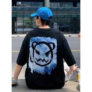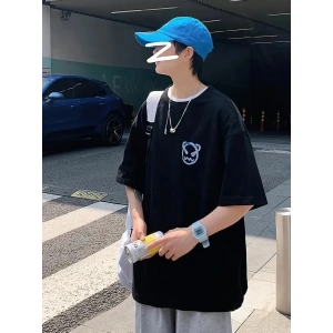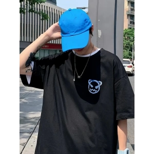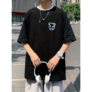 20/1 Penye Compack Bisiklet Yaka Kore tarzı sevimli ayı baskı Kısa Kol Erkek t-shirt - Siyah