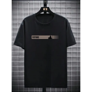 20/1 Penye Compack FUTRE Baskılı Oversize Kısa Kol Bisiklet Yaka T-shirt - Siyah