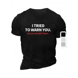 20/1 Penye Compack I TRIED TO WARN YOU. Baskılı Oversize Bisiklet Yaka T-shirt - Siyah