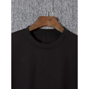 LB Ön Arka Baskılı Oversize Bisiklet Yaka Yazlık T-shirt - Siyah