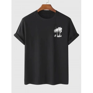 20/1 Penye Compack Palmiye Ön Baskılı Oversize Bisiklet Yaka Kısa Kol Yazlık T-shirt - Siyah