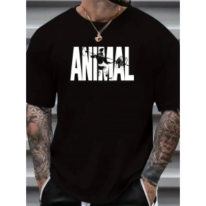 ANIMAL Desen Baskı Erkek Oversive Tişört, Grafik Tişört Erkek Yazlık Outdoor Kıyafetleri, Sporda ve Günlük Giyime Uygun - Siyah