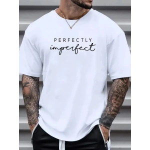 erkekler için Ön Arka Baskılı PERFECTLY günlük Kısa Kol tişört - Beyaz
