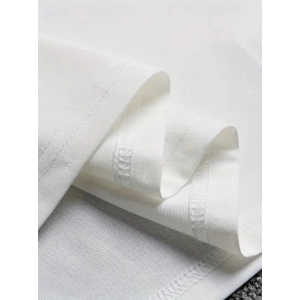 20/1 Penye Compack Palmiye Ön Baskılı Oversize Bisiklet Yaka Kısa Kol Yazlık T-shirt - Beyaz