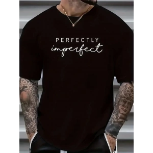 erkekler için Ön Arka Baskılı PERFECTLY günlük Kısa Kol tişört - Siyah
