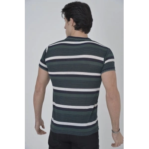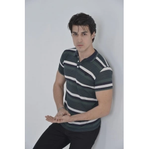 Erkek Yakalı Slim Fit Dokuma Çizgili T-Shirt - Haki