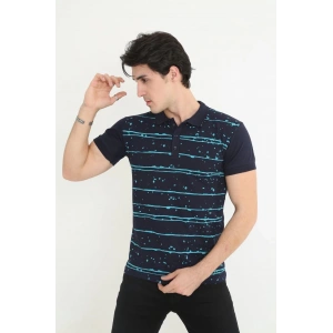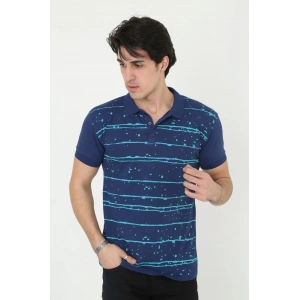 Erkek Yakalı Slim Fit Pike Çizgili T-Shirt - Lacivert