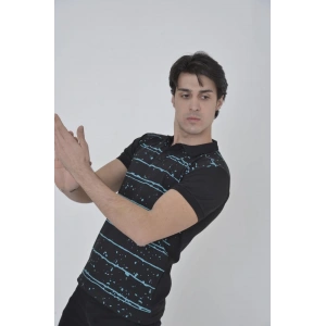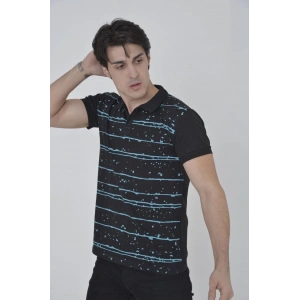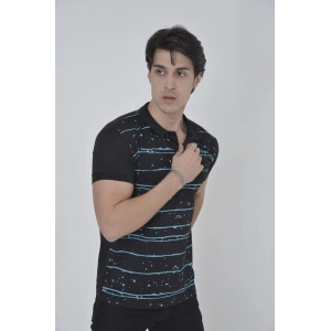 Erkek Yakalı Slim Fit Pike Çizgili T-Shirt - Siyah
