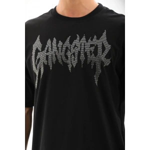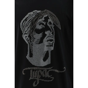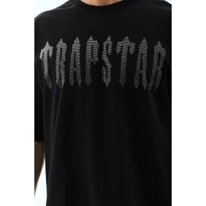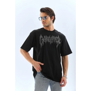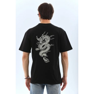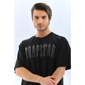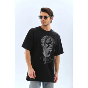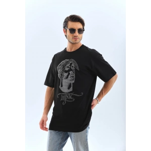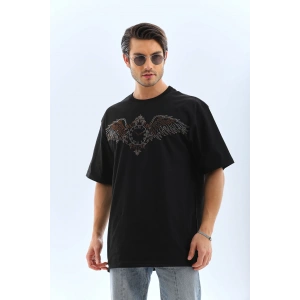 Unisex Oversize Taşlı Bisiklet Yaka T-Shirt - Siyah