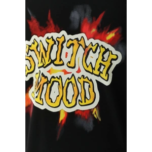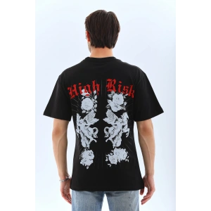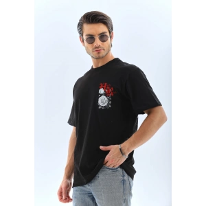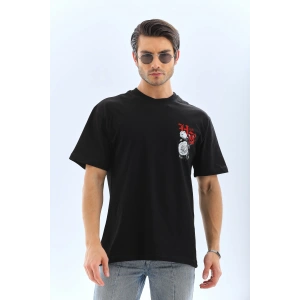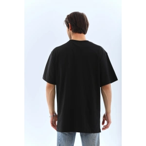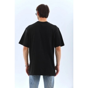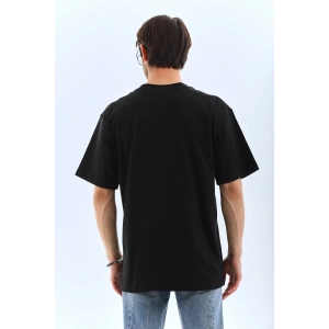 Unisex Oversize Baskılı Bisiklet Yaka T-Shirt - Siyah