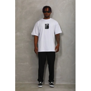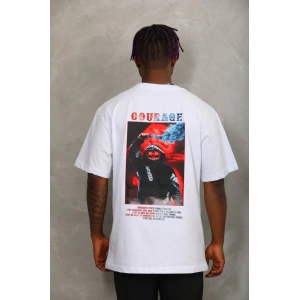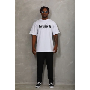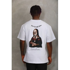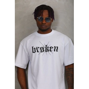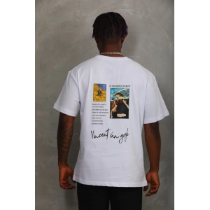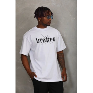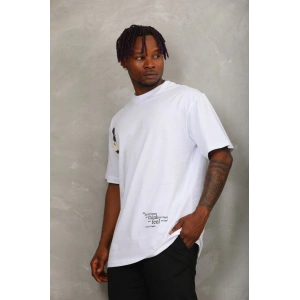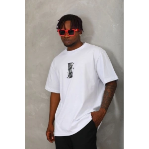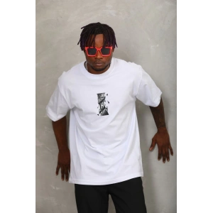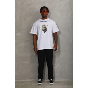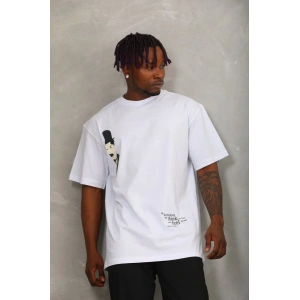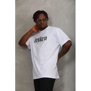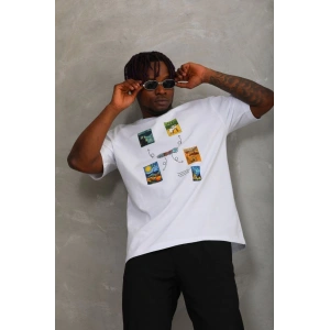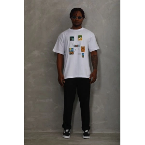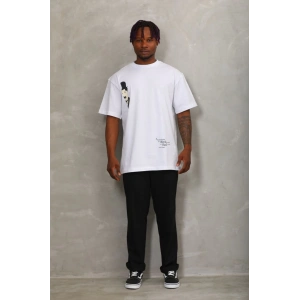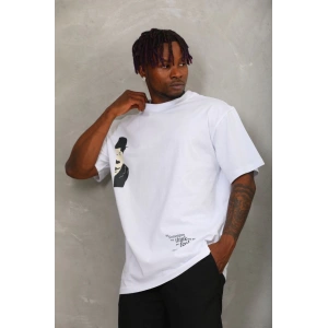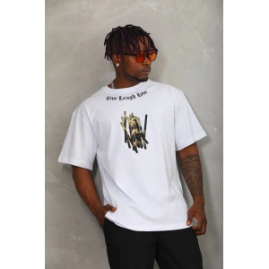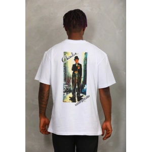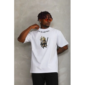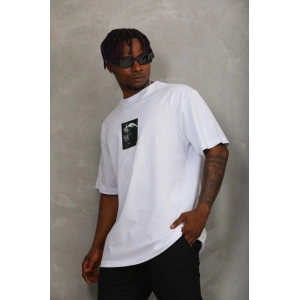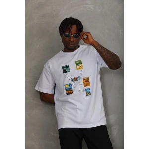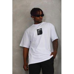 Unisex Oversize Baskılı Bisiklet Yaka T-Shirt - Beyaz