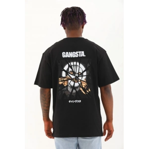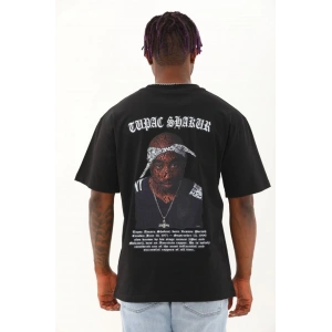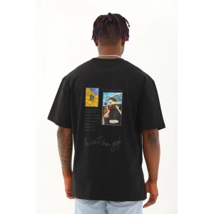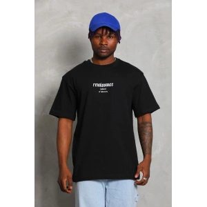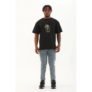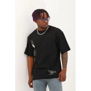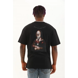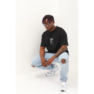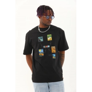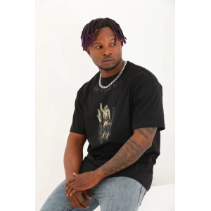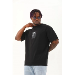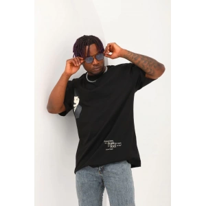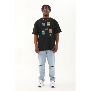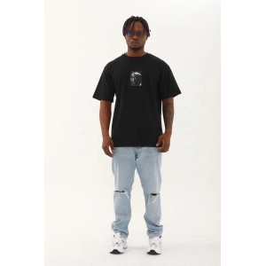 Unisex Oversize Baskılı Bisiklet Yaka T-Shirt - Siyah