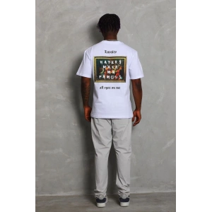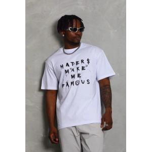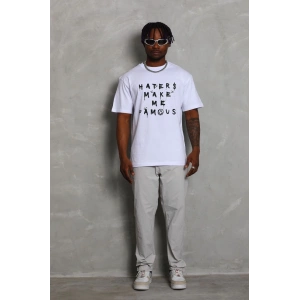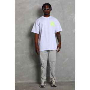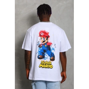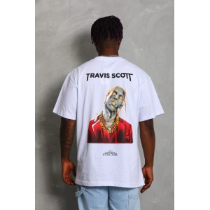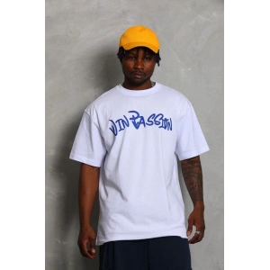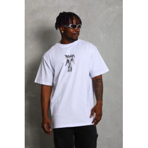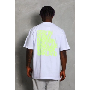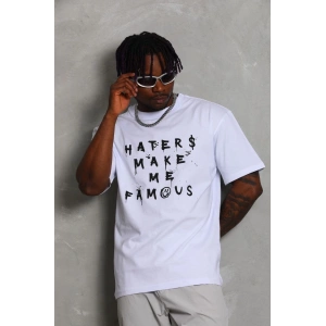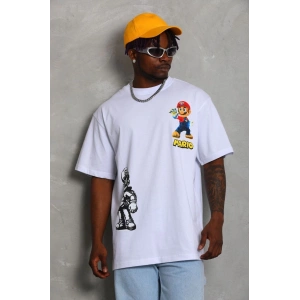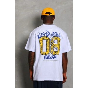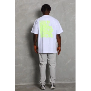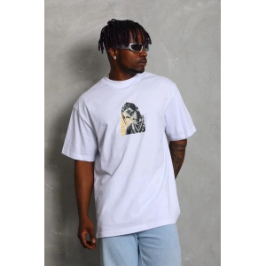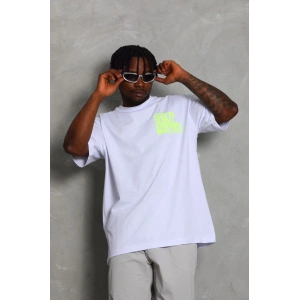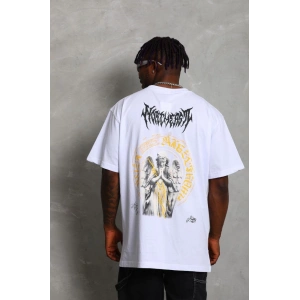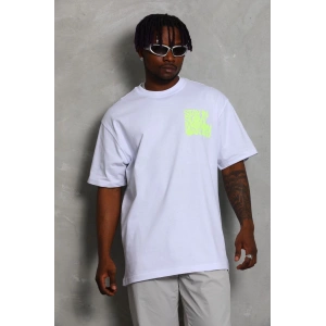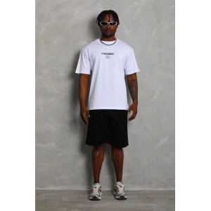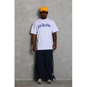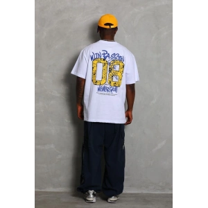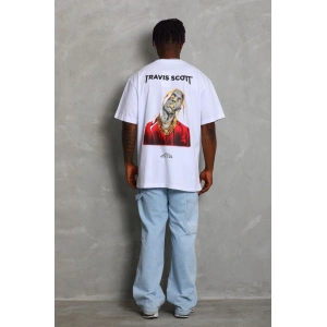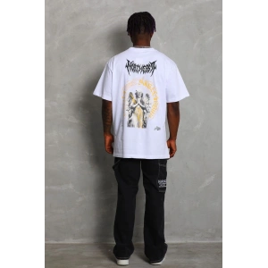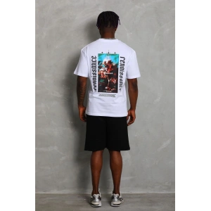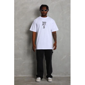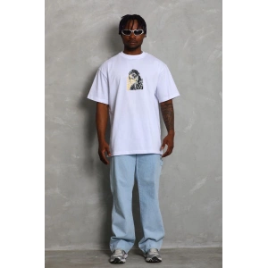 Unisex Oversize Baskılı Bisiklet Yaka T-Shirt - Beyaz