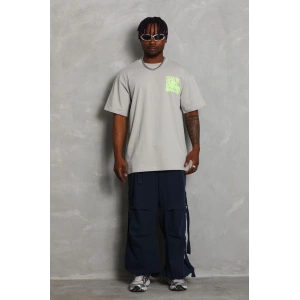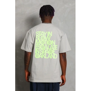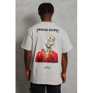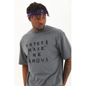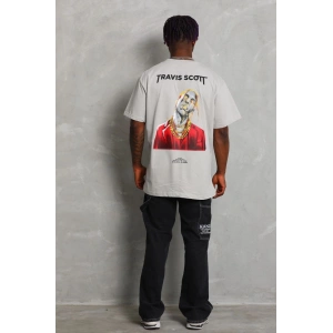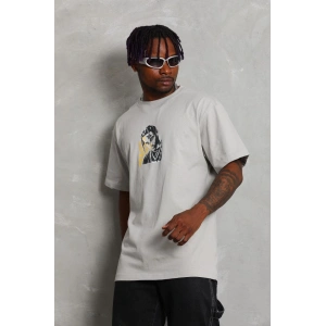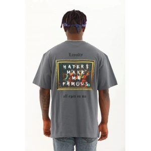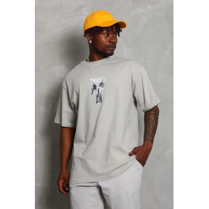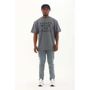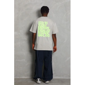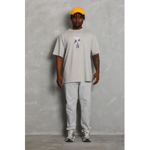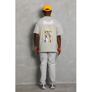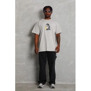 Unisex Oversize Baskılı Bisiklet Yaka T-Shirt - Gri