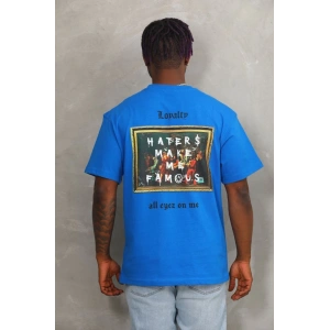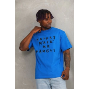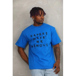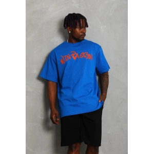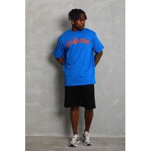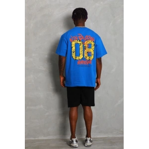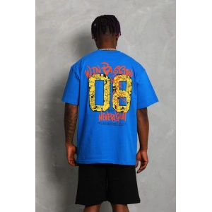 Unisex Oversize Baskılı Bisiklet Yaka T-Shirt - Mavi