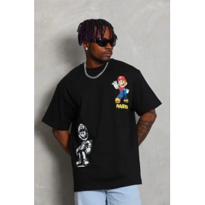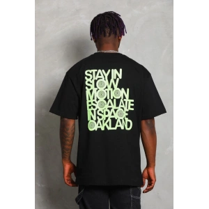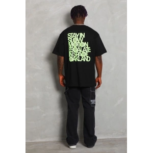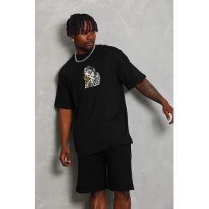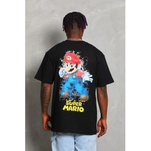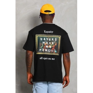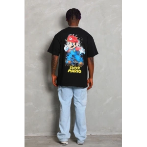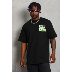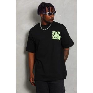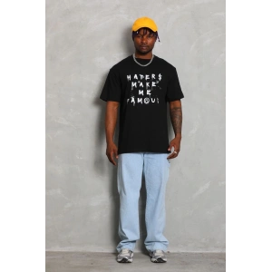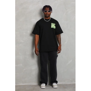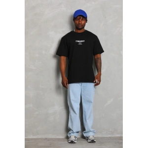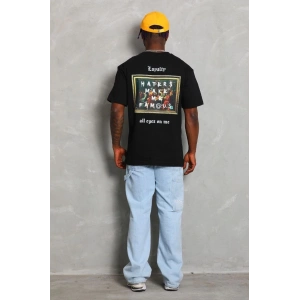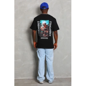 Unisex Oversize Baskılı Bisiklet Yaka T-Shirt - Siyah