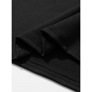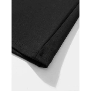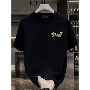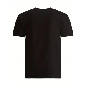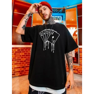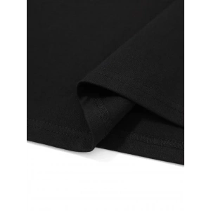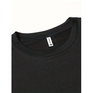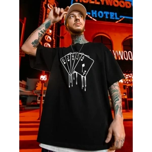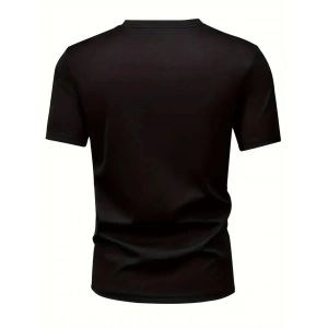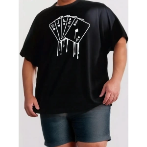 erkek büyük beden Kart baskılı düz renk kısa kollu bisiklet yaka tişört gündelik giyim - Siyah
