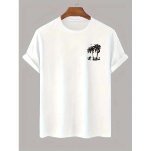 20/1 Penye Compack Palmiye Baskılı Oversize Bisiklet Yaka Kısa Kol T-shirt - Beyaz