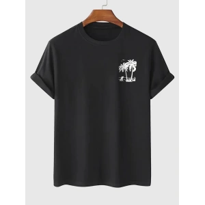20/1 Penye Compack Palmiye Baskılı Oversize Bisiklet Yaka Kısa Kol T-shirt - Siyah