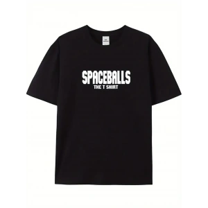 20/1 Penye Compack SPACEBALLS Erkek Baskılı Oversize Bisiklet Yaka Kısa Kol Yazlık T-shirt - Siyah