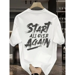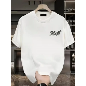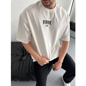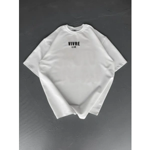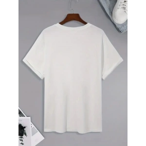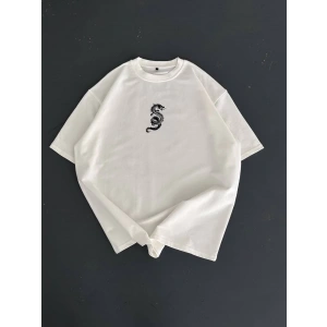 20/1 Penye Compack Baskılı Oversize Bisiklet Yaka Kısa Kol Yazlık T-shirt - Beyaz