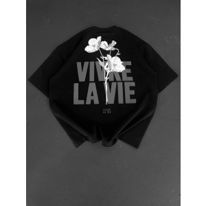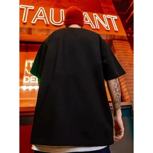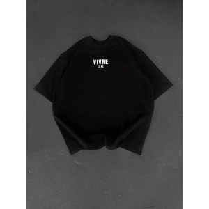20/1 Penye Compack Unisex Baskılı Oversize Bisiklet Yaka Kısa Kol Yazlık T-shirt - Siyah