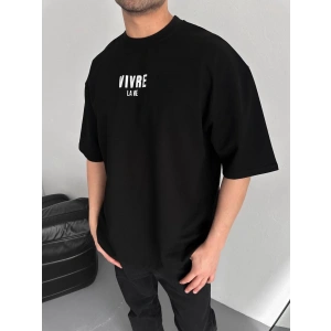 20/1 Penye Compack Baskılı Oversize Bisiklet Yaka Kısa Kol Yazlık T-shirt - Siyah