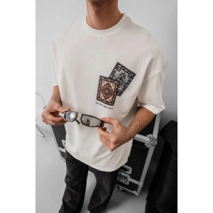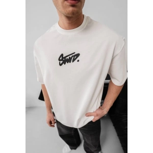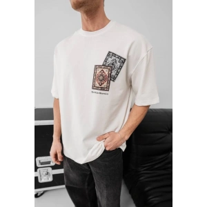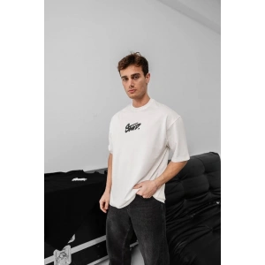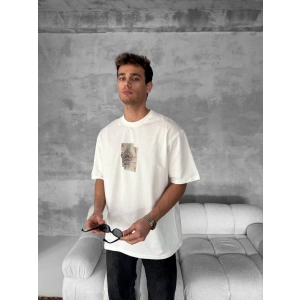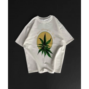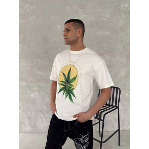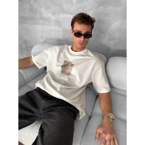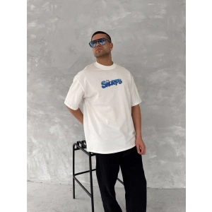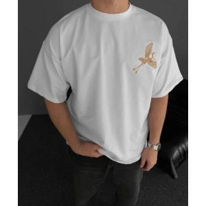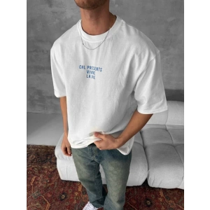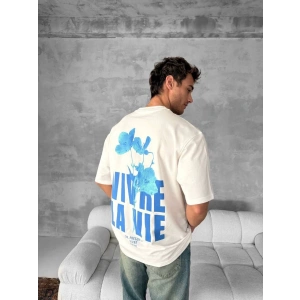 Erkek Baskılı Oversize T-shirt - Beyaz