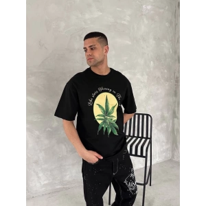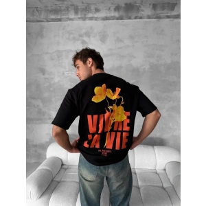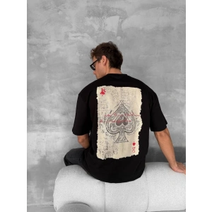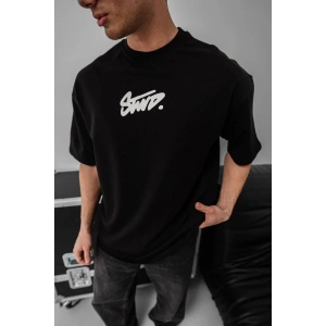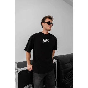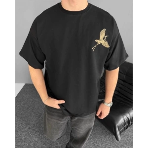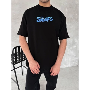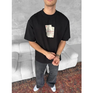 Ön ve Arka Baskılı Oversize Bisiklet Yaka T-shirt- Siyah