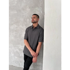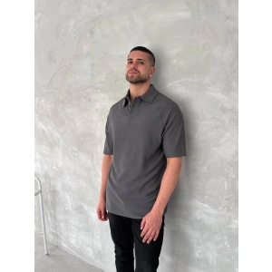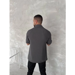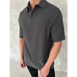 Yakalı Patlı Kısa Kol T-shirt - Antrasit