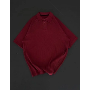 Yakalı Patlı Kısa Kol T-shirt - Bordo