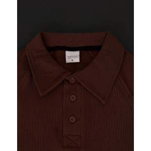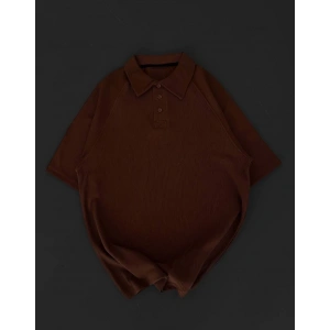 Yakalı Patlı Kısa Kol T-shirt - Kahverengi