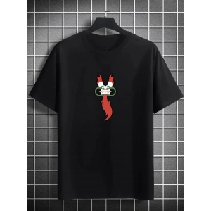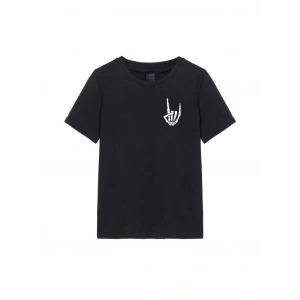 Erkek Bisiklet Yaka Kısa Kol Baskılı T-shirt - Siyah