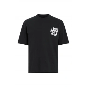 Unisex Bisiklet Yaka Double Oversize Baskılı T-Shirt - Siyah