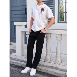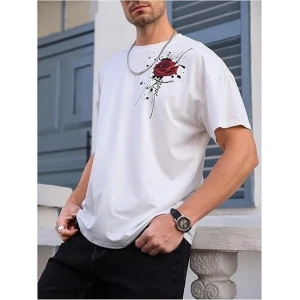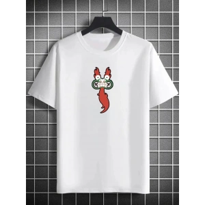 Erkek Bisiklet Yaka Kısa Kol Baskılı T-shirt - Beyaz