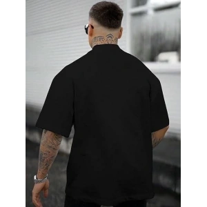 Unisex Yarım Fermuarlı Oversize Baskılı T-Shirt - Siyah