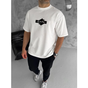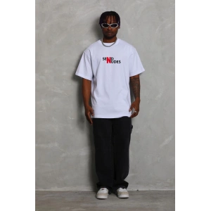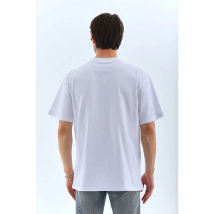 Unisex Bisiklet Yaka Double Oversize Baskılı T-Shirt - Beyaz