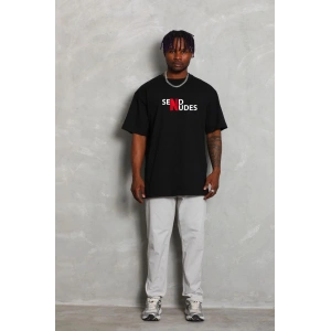 Erkek Baskılı Oversize T-shirt - Siyah