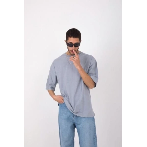 Unisex Basic Bisiklet Yaka Oversize T-Shirt - Gri
