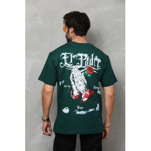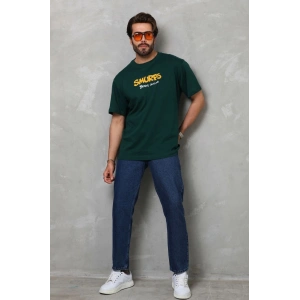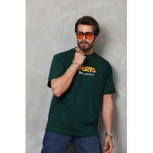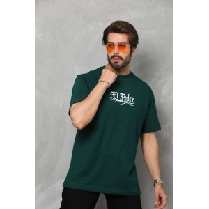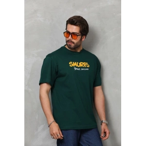 Unisex Bisiklet Yaka Baskılı Oversize T-Shirt - Yeşil